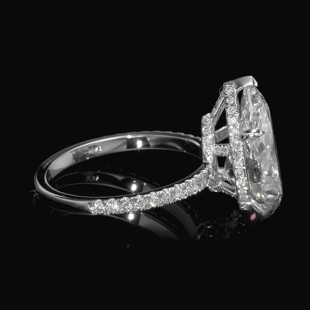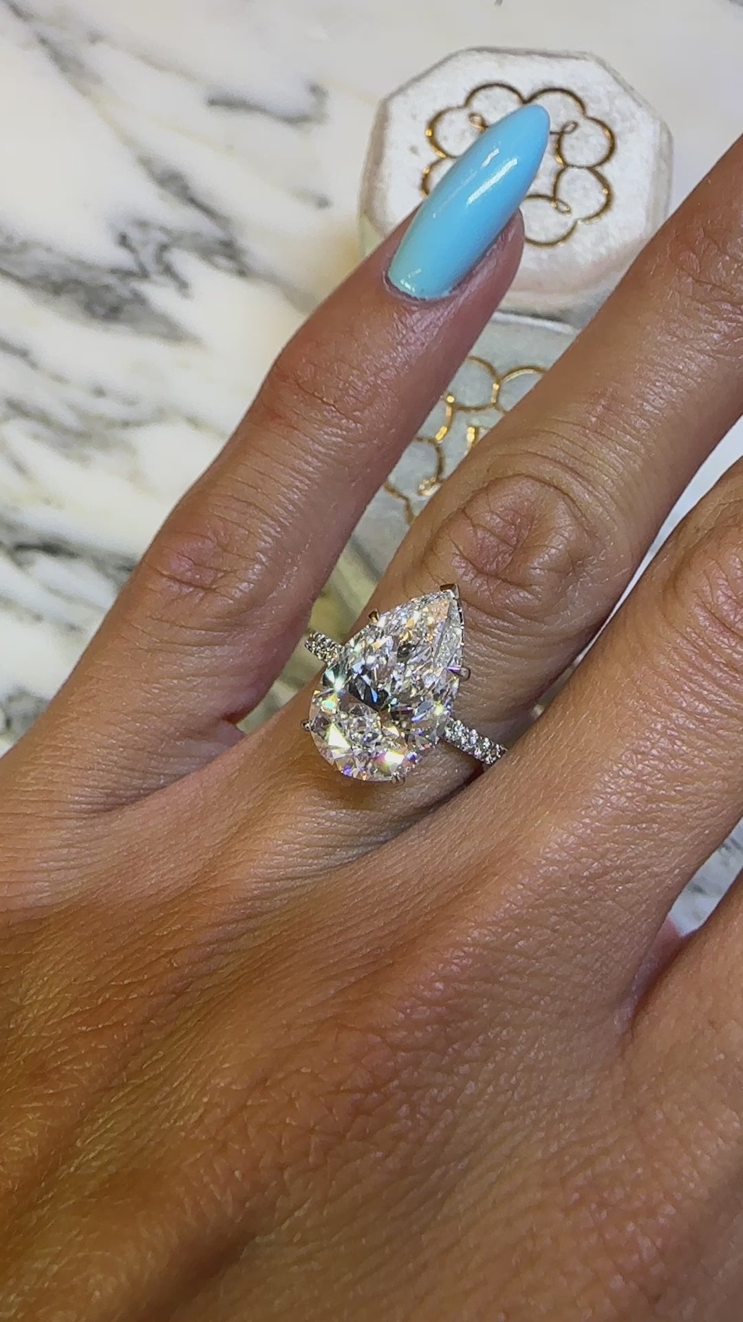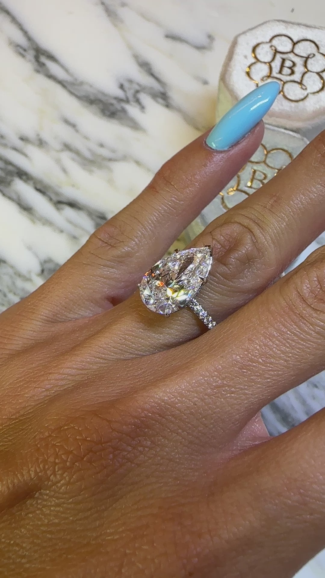 5.58 Carats Lab Grown Pear Shaped Micropaved Side Stones Hidden Halo Diamond Engagement Ring