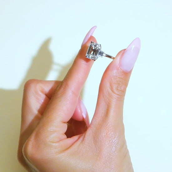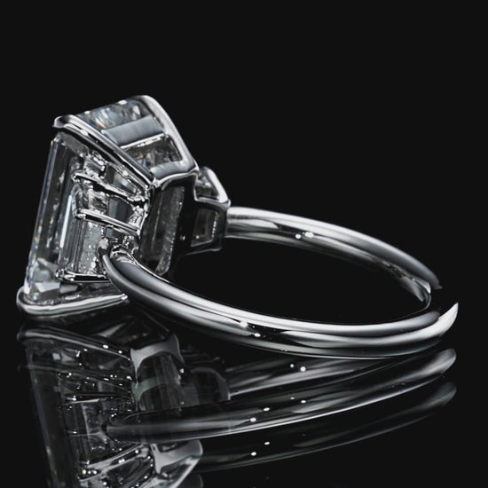 5.61 Carats Lab Grown Emerald Cut with Trapezoid Side Stones Diamond Engagement Ring