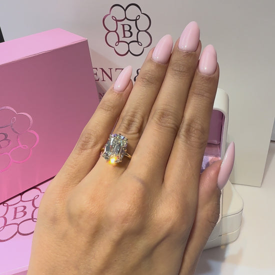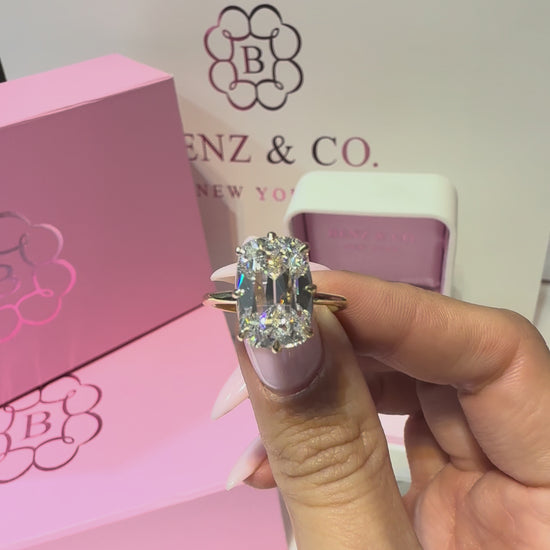 5 Carat Lab Grown Elongated Old Mine Cut Diamond Solitaire Engagement Ring