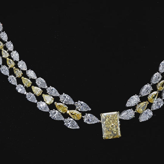 58.45 ct Fancy Vivid Yellow Radiant & Pear-Shaped Diamond Necklace in 14k Yellow & White Gold