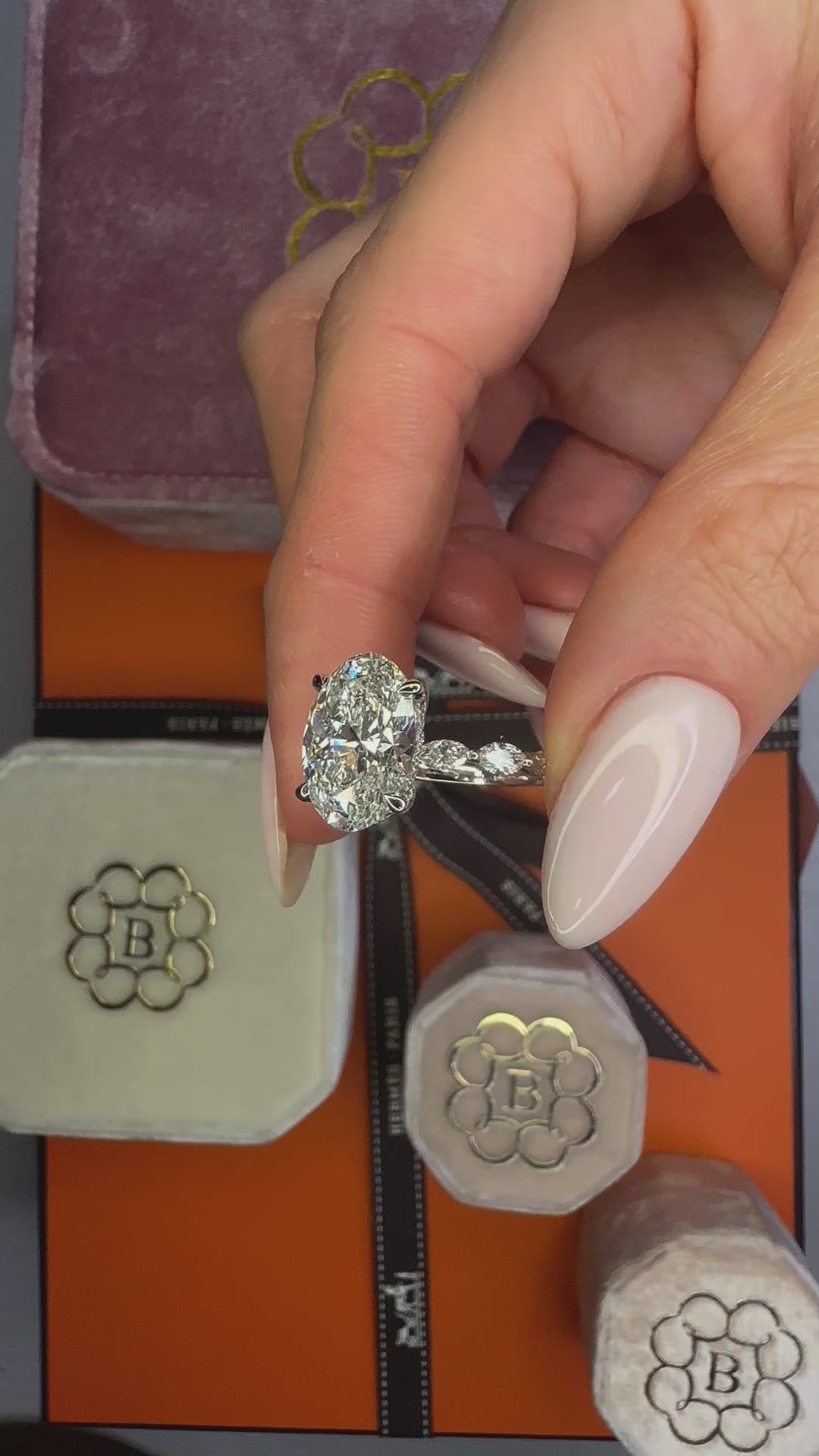 6.05 Carats Lab Grown Oval Cut with Marquise Side Stones Hidden Halo Diamond Engagement Ring