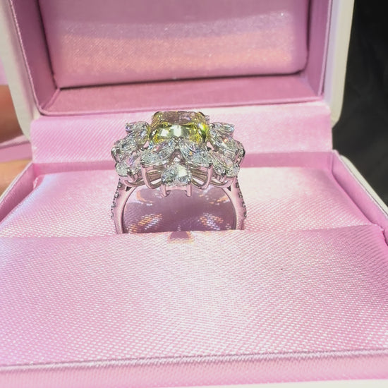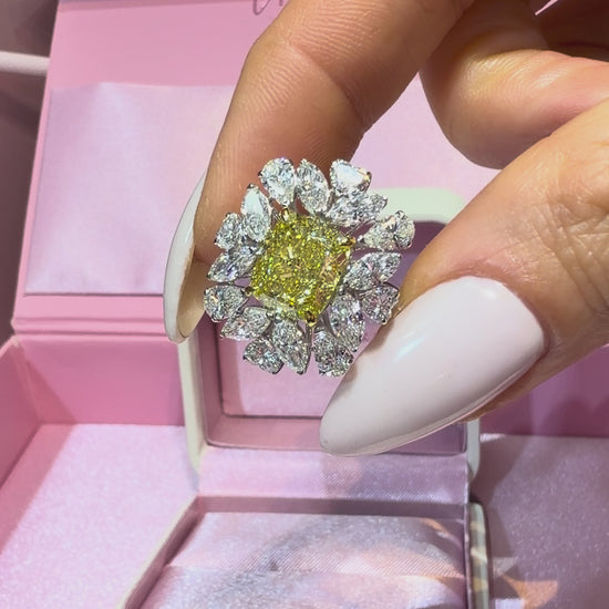 6.87 Carats Cushion Cut Fancy Intense Yellow High Jewelry Lab Grown Diamond Engagement Ring