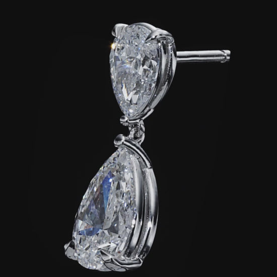 Timeless, elegant, and effortlessly refined. These classic drop earrings feature two perfectly matched pear shaped lab grown diamonds on each earring, a 1.00 carat pear on top and a larger 2.00 carat pear below, creating a graceful, elongated silhouette that moves beautifully with every step.